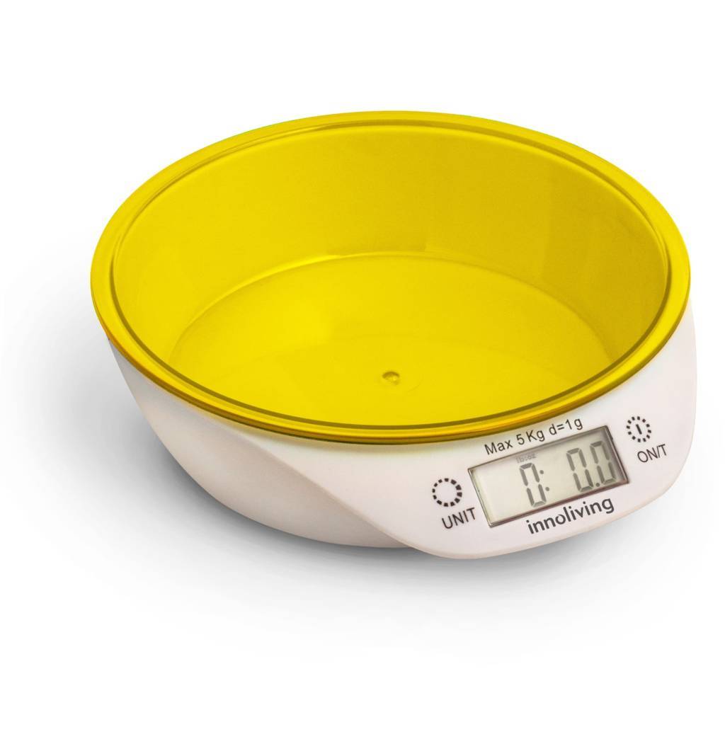 | Articolo: INN-133Y GIALLO Marca: INNOLIVING Codice: 30485 Bilancia digitale da cucina con ciotola, Capacità 5kg, Divisione 1g, Ampia ciotola in plastica, Ampio display LCD retroilluminato DISPONIBILI: 2 |  |