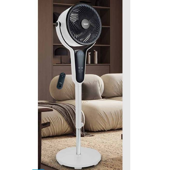 Design elegante, griglia a raggiera, motore AC ad alte prestazioni, supersilenzioso, 26 velocità, timer, display digitale con temperatura ambiente e funzioni impostate.