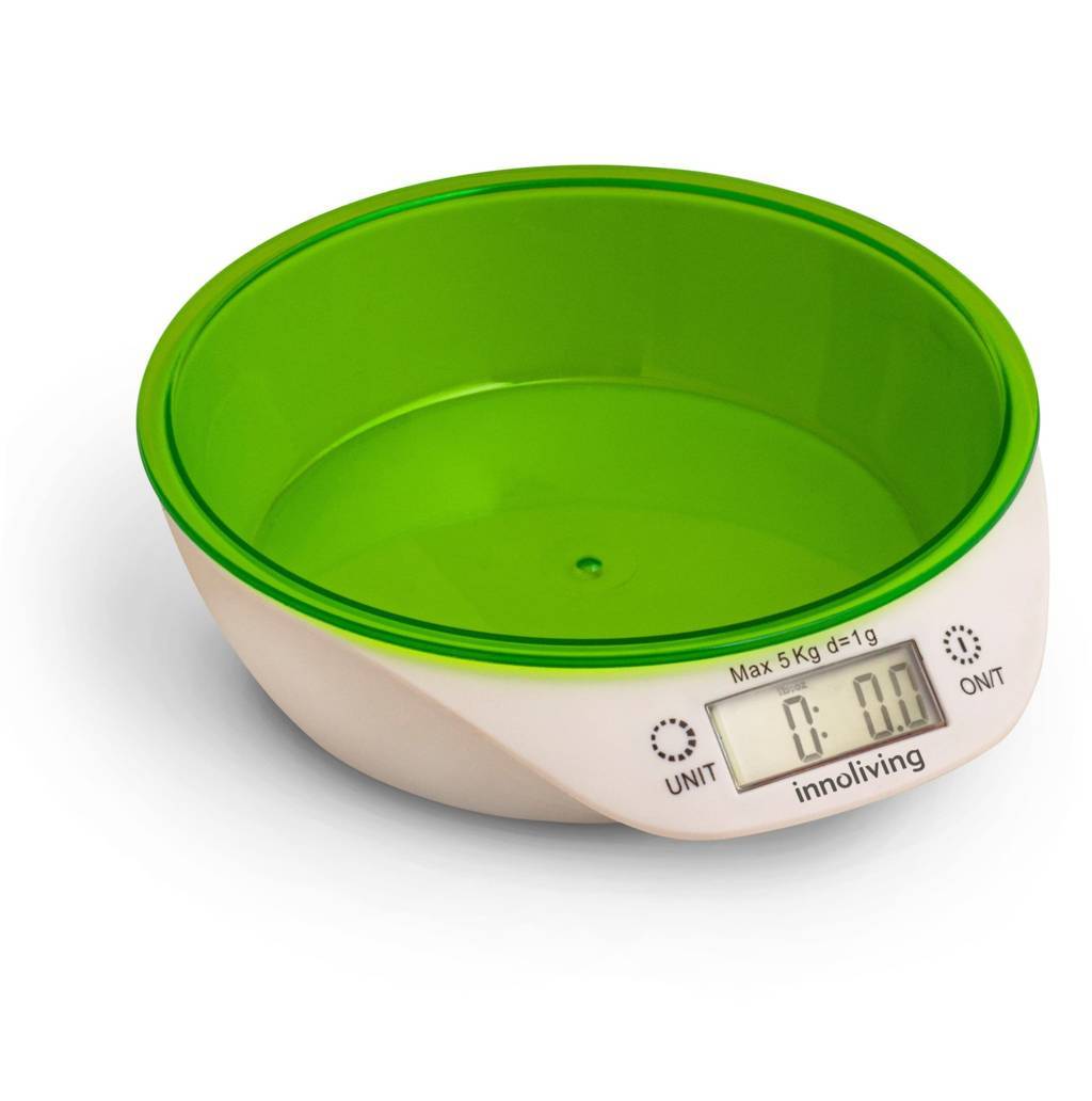 | Articolo: INN-123G GREEN Marca: INNOLIVING Codice: 21395 BILANCIA DIGITALE DA CUCINA ULTRASLIM Portata Max: 5 kg