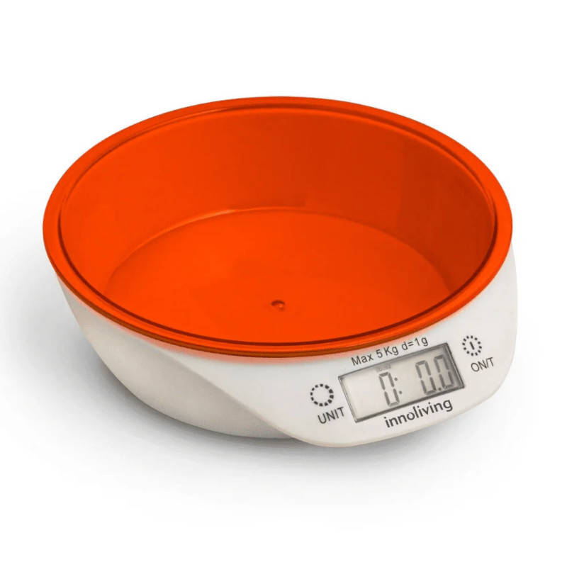 Articolo: INN-123O ORANGE Marca: INNOLIVING Codice: 21397 BILANCIA DIGITALE DA CUCINA ULTRASLIM Portata Max: 5 kg