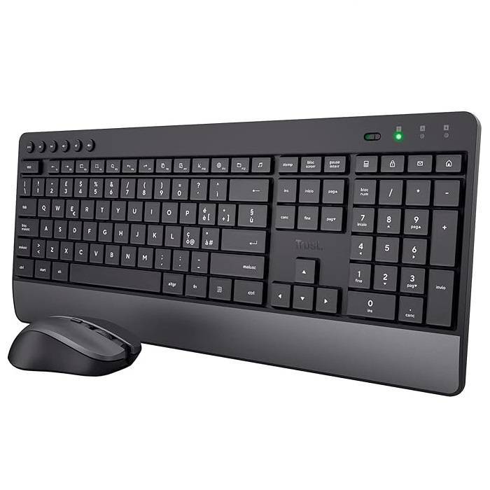 ARTICOLO: 23943 MARCA: TRUST CODICE: 25971 Set tastiera e mouse wireless, Tastiera e mouse wireless silenziosi, per lavorare per ore in pieno comfort