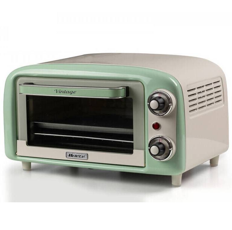 ARTICOLO: 3919 VERDE MARCA: ARIETE CODICE: 30335 Forno Elettrico Vintage, 800W, Capacità 10L, Doppio vetro, Retrò, timer, funzione grill, larg. 37 alt 21 prof. 31 cm